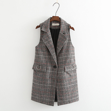 无袖马甲女春秋中长款韩版2017新款修身格子翻领背心西装外套女