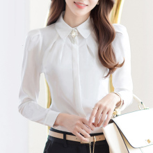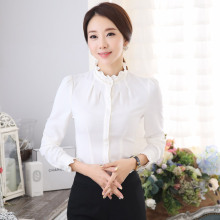 2017新款职业装女装白衬衫纯色衬衣韩版复古女士衬衣打底衫修身女