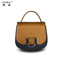 单肩包女包2017新款韩版撞色真皮马鞍包斜跨包时尚牛皮撞色小猪包