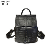 双肩包女2017新款欧美大牌真皮鳄鱼纹商务大背包头层皮抽带水桶包