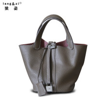 真皮女包2017新款水桶包菜篮子包荔枝纹牛皮锁扣手拎手提包子母包