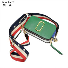 2017明星宋佳同款拼色相机包手包斜挎撞色小包包真皮宽肩带女包潮