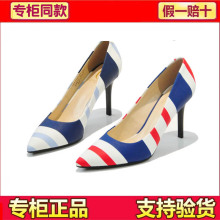 圆漾2017春夏新品尖头细跟女鞋拼色条纹时尚高跟鞋单鞋1017101801