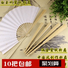 7-10寸玉竹本色平板中国风宣纸扇子折扇 扇面空白宣纸折扇