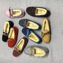 新款春季女鞋豆豆鞋女休闲鞋雪地靴蝴蝶结真皮羊皮毛一体包子鞋