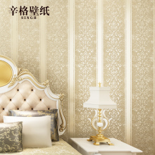 辛格蚕丝简约欧式宽条纹壁纸 无纺布墙纸 卧室客厅背景3D立体皮革