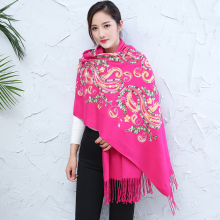 2016秋冬新款丽江民族风刺绣仿羊绒绣花红色加厚保暖围巾披肩两用