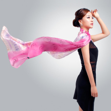帛舟 乔其缎真丝丝巾女长款薄 春秋韩版山茶花桑蚕丝围巾披肩两用