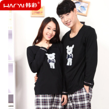 韩彩秋情侣睡衣长袖睡衣套头卡通情侣纯棉睡衣长袖男女家居服套装