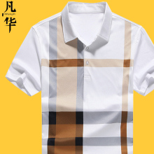 短袖体恤男士T恤夏装简约条纹polo衫商务装翻领中年薄款半袖男