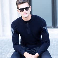 秋冬款中年针织衫纯色休闲男士毛衣半高领拉链羊毛衫男加厚
