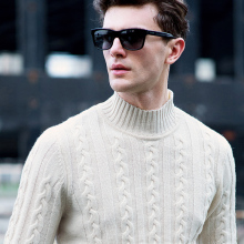 新款羊毛衫男半高领麻花毛衣纯色加厚针织衫修身青年学生白色潮