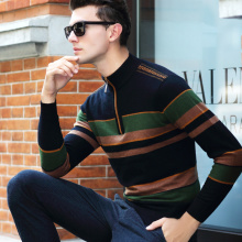 条纹毛衣男冬季羊毛衫男加厚款拉链半高领男士纯羊毛毛衣针织衫