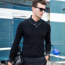 半高领毛衣男商务纯羊毛衫男装全羊毛衣男士针织V领加厚撞色拼接