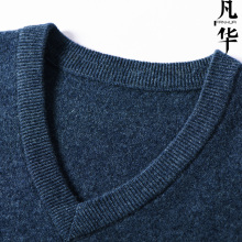凡华一生羊毛衫男装鸡心领纯羊毛针织衫商务男士纯色V领毛衣男