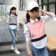 2017新款春装上衣潮儿童春款翻领衬衣女大童韩版长袖加两件衬衫