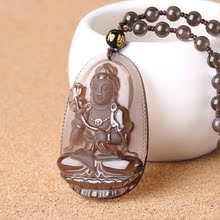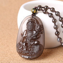 开光正品黑曜石普贤菩萨吊坠属龙蛇本命佛守护神男女款项链饰品